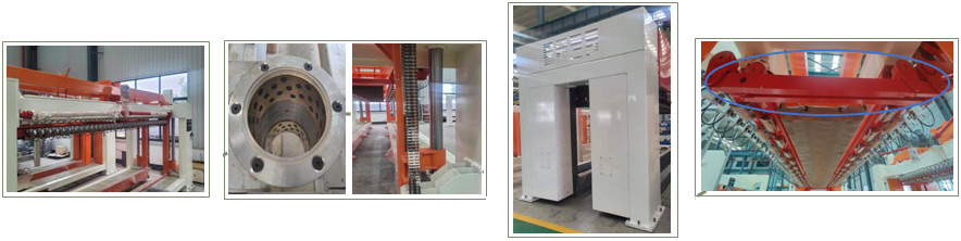 2、导向柱直径加大到150mm,每组导向铜套增加到2个,提升采用双链条24A加粗配置,提升安全系数为提升重量的20倍,坯体提升装置上下运行更加稳定。