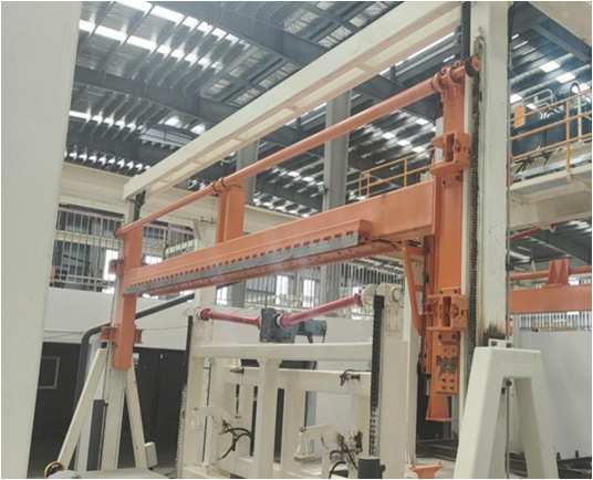 清边机适用于加气混凝土车间切割完成后的坯体翻转自动去底(顶)皮,该设备必须配合地翻台使用,能使经切割机切割产生的废料分离脱落并回收成废浆使用
