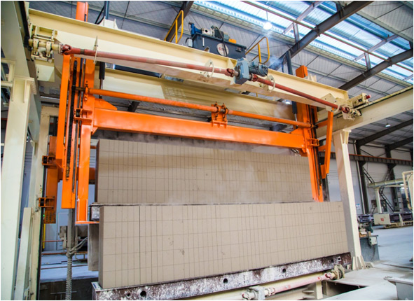 将切割后含有坯体的侧板吊运至蒸养小车。