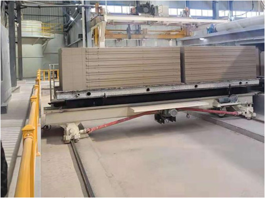 此摆渡车是将承载坯体的蒸养小车输送至釜前轨道进行编组。